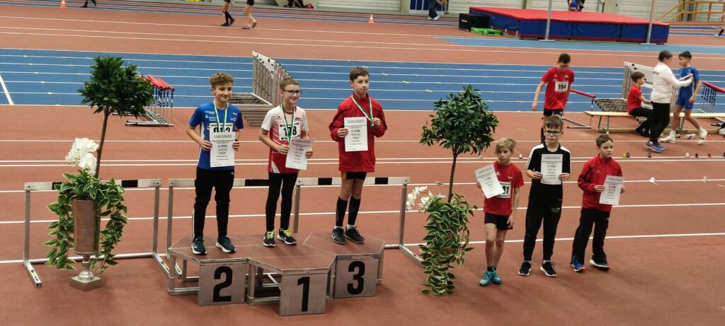 Ebenfalls hervorzuheben war der 800 m Sieg von Marvel Scheffler (M10) in starken 2:42,56 min, ebenso die 10,04 m vom Kugelsieger Gerrit Rische (M12), die sehr guten 8,49 s der 60 m Sprintsiegerin Amelie Seidel (W12 – Vorlauf in 8,41 s) und der erste Platz im Weitsprung von Izzie Voigt (W12) mit gesprungenen 4,44 m.