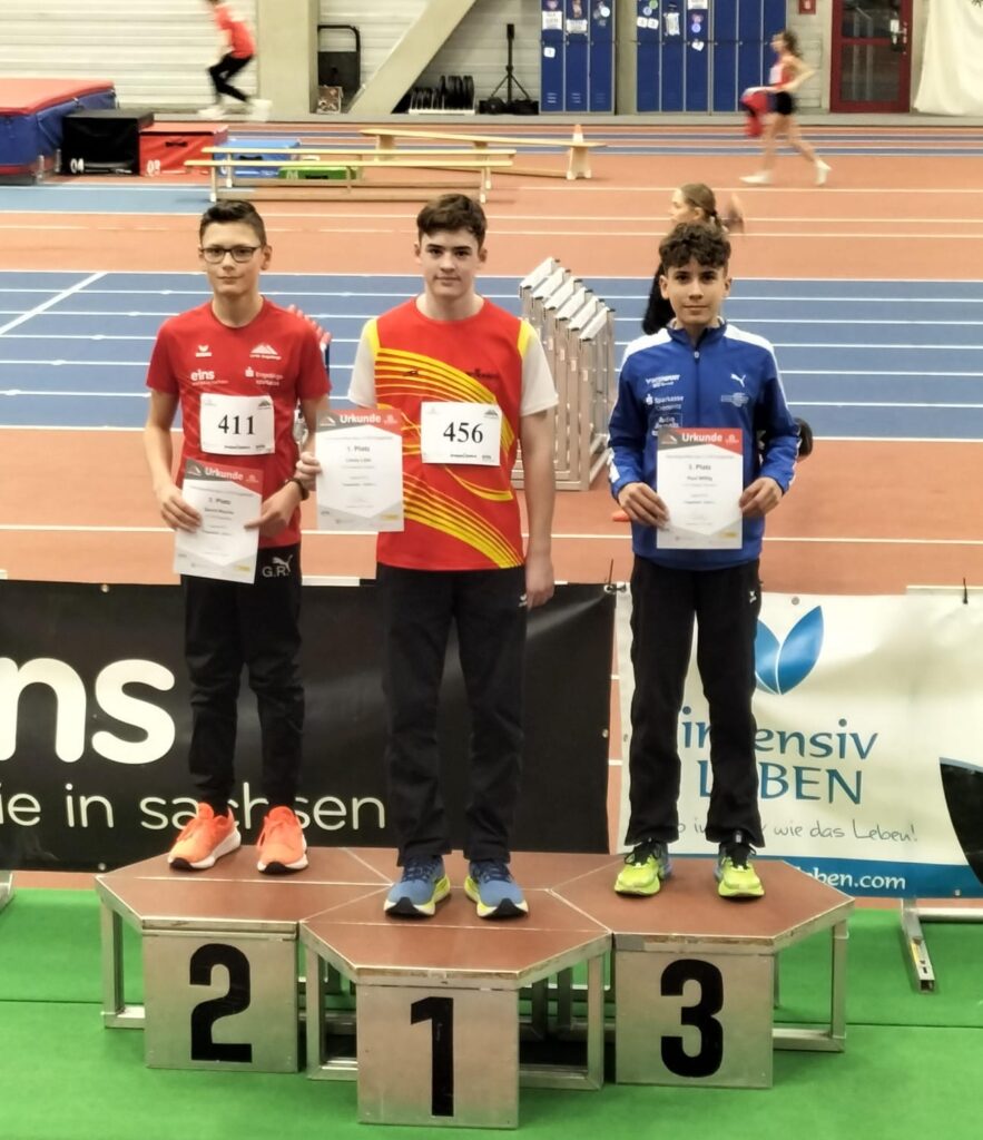Auch in der U14 konnten wir in den meisten Disziplinen um die Plätze 1 bis 3 mitkämpfen. Sorin Grabiensky (M12) gelang der Sieg beim Kugelstoßen mit einer Weite von 8,83 m (PB). Im 60m-Sprint konnte sich Maurice Wöllner (M12) mit einer Zeit von 9,10 Sekunden den Bronzerang sichern. Sandra Söldner (W12) belegte in der gleichen Disziplin ebenso Platz 1. In der M13 sprang Gerrit Rische mit einer Weite von 4,71m (PB) auf den dritten Rang. Im Kugelstoßen erreichte er mit 9,56m den zweiten Platz. Mit einer neuen Bestleistung von 2:37 min rannte Max Dienel beim 800m-Lauf als Zweiter über den Zielstrich. Aus unserer Sicht die meisten Podestplätze gab es in der W13. Ganz oben auf den Podest durfte Amelie Seidel bei der Ehrung des 60m-Sprints stehen. Mit der Bestzeit von 8,20 Sekunden ließ sie ihre Konkurrenten hinter sich. Izzie Voigt sicherte mit 8,37 Sekunden (PB) den dritten Rang. Auch im Weitsprung standen zwei unserer Athleten auf dem Podest. Helene Pauli sprang mit 4,46m auf Platz 2 und Anna Böttcher mit 4,37m auf Platz 3. Magdalena Müller und Luisa Stütz belegten über die 800m den zweiten und dritten Rang (beide 2:53 min). Luisa stellte damit eine neue persönliche Bestleistung auf. Izzie Voigt musste sich bei den 60m-Hürden nur einer Konkurrentin geschlagen geben (Zeit: 10,54 sek).