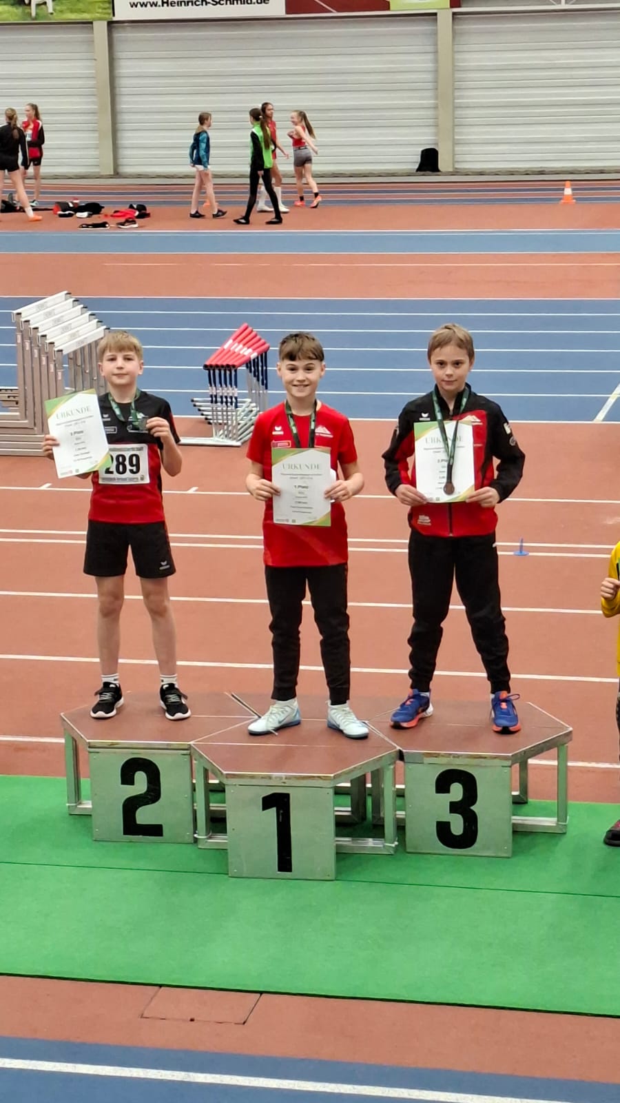 25 Podestplätze für unsere jungen Athleten der U14 und U12 bei den Regional-Hallen-Meistershaften in der Chemnitzer Leichtathletikhalle. Mit zwei Goldmedaillen avancierte Paul Thore Richter (M10) über 60 m und 60 m Hürden zum erfolgreichsten Teilnehmer. Henri Haase (M10) stand seinem Trainingskameraden nicht nach und sammelte gar vier Medaillen (1. Weit, 2. 800 m und 60 m Hürden, 3. 60 m). Ganz oben auf dem Treppchen standen auch Tristan Pönitz (M11-Weit); Kim Hunger (W12-60 m); Ida Simon (W12-60 m Hürden); Carolin Fischer (W11-800 m). Zweite Plätze erreichten Kaisa Heidler (W13-60 m); Marla Friedrich (W12-Weit); Liam Schlegel (M10-60 m) und Maira Schiller (W11-60 m). Dritte Plätze schafften Sorin Grabinski (M13-Weit); Marvel Scheffler (M12-800 m); Ida Simon (W12-60 m); Nele Fritzsch (W12-Kugel); Tristan Pönitz (M11-60 m) und Lotta Schiefer (W10-60 m Hürden). Mit einmal Gold, dreimal Silber und einmal Bronze lieferten auch die Staffeln ein starkes Ergebnis ab.